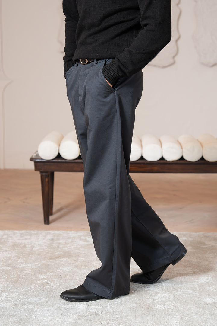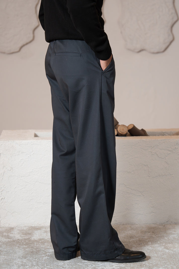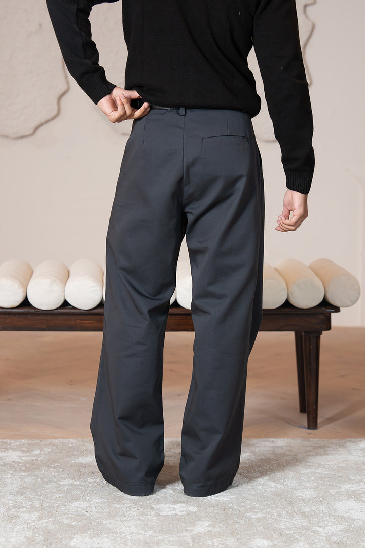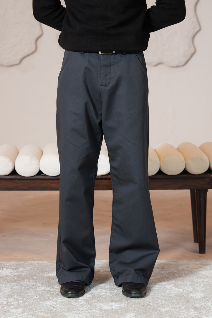 Cut from a mid-weight cotton-blend twill, these wide-leg trousers offer a clean, tailored look with a relaxed feel. Designed to sit comfortably at the waist with a full-length break, they drape effortlessly over shoes while maintaining a structured silhouette.